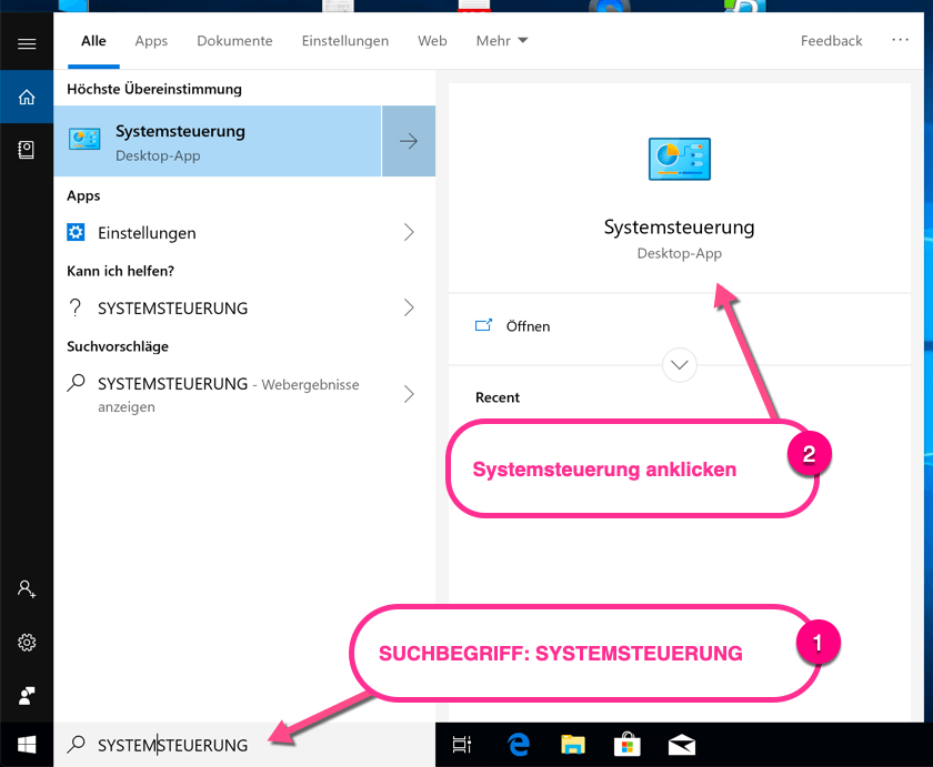• Gebe in die Suchleiste der Systemsteuerung den Begriff Netzwerkverbindungen anzeigen ein.